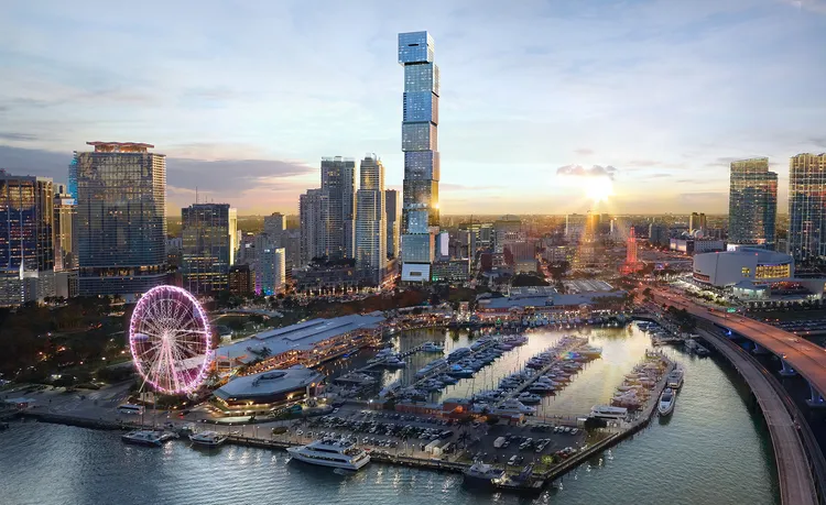 Rising 100 stories above the Miami River and Biscayne Bay, this will be the tallest building in Florida, built to an astounding height of 1,049 feet above ground. Conceptualized by the award-winning architect behind the Burj Al Arab in Dubai, Carlos Ott in association with Sieger Suarez, this supertall is designed to resemble a staggering stack of glass cubes.