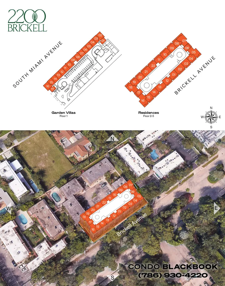 Designed by renowned Revuelta Architecture International, 2200 Brickell Ave will become a boutique 5-story condo community with only 105 contemporary, fully furnished and finished units, including Villas with private gardens. Featuring a distinctly modern structure, the boutique mid-rise will offer floor-to-ceiling glass windows to welcome an abundance of natural light. Each magnificent residence will feature open concept floor plans, custom kitchens designed by ODA New York with pristine wood cabinetry and stone countertops, innovative household appliances, exquisite ceramic tile and wood flooring, spacious, fully built-out custom closets, luxury primary bathrooms featuring double vanities, stone countertops, porcelain tiling, rain showers, and other refined finishes. Highlight amenities include an expansive one-acre rooftop haven featuring a resort-style pool with an outdoor spa, a pickleball court, a summer kitchen, an outdoor fitness area, a walking track, as well as a world-class fitness center, 24 hour attended lobby, intentional wellness spaces, and more.