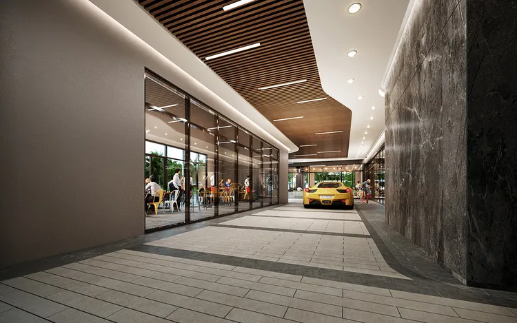 - 12,000 square feet of commercial space, accommodating a café, an organic market, a restaurant, and retail outlets