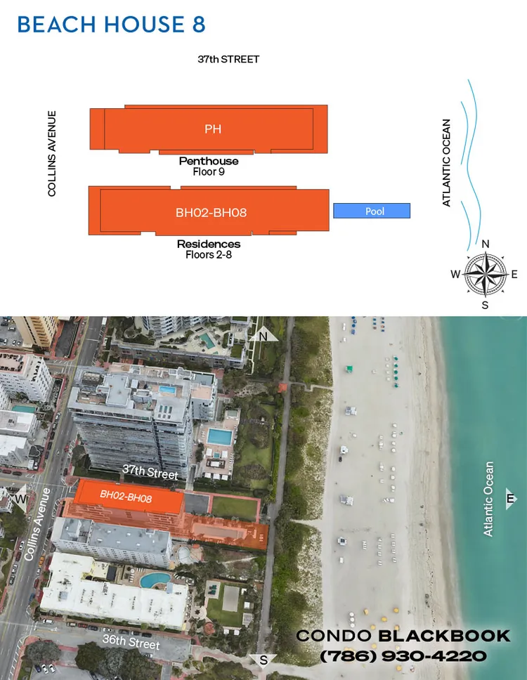 Living at Beach House 8, residents are minutes from the famous Faena District’s high-end Bazaar, Art and Performance Forum, plus the world-famous Faena Hotel. Perched on Millionaire’s Row, a short walk will take you to a host of world-class hotels and restaurants, some of which are well-known names and specimens of Miami’s Art Deco architecture. By car, Lincoln Road is 15 minutes, Edgewater is 25 minutes, the Miami Design District is 25 minutes, Downtown is 30 minutes, and Miami International Airport is 35 minutes away.
